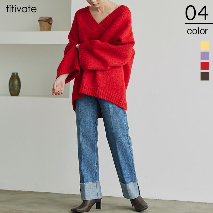 次にご紹介するティティベイトのきれい色カラーニットは、カジュアルな編地がデイリーにぴったりなVネックシンプルゆるニット。