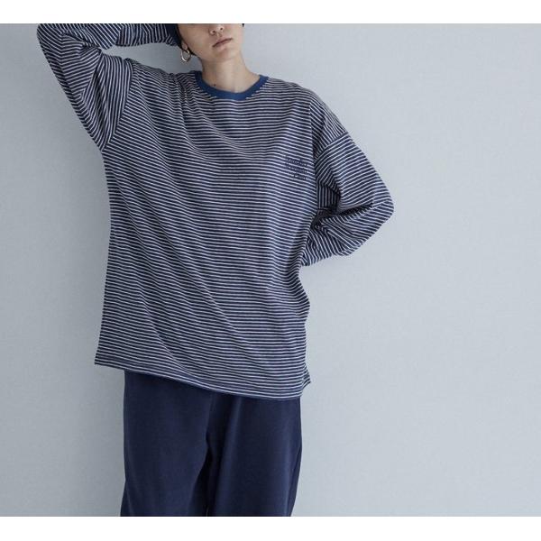 自然な凸凹が魅力的な地球に優しいリサイクルコットンを使用したマルチボーダー。