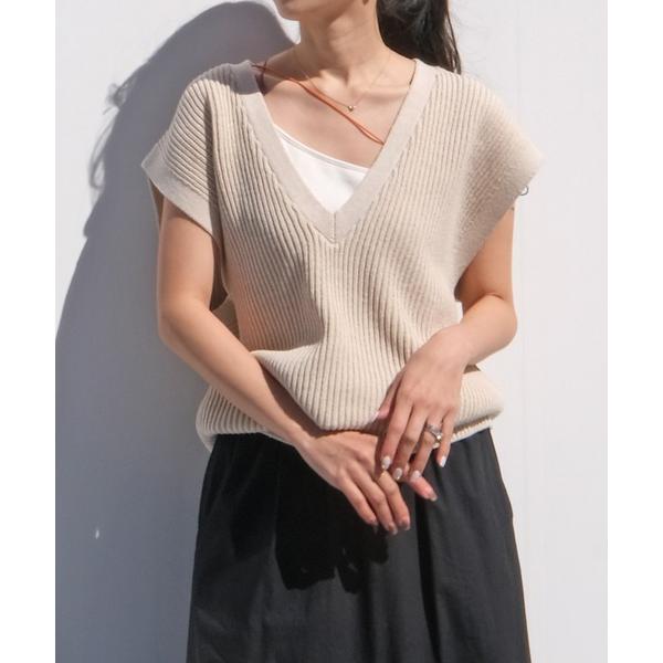 トップスは、GALLARDAGALANTE (ガリャルダガランテ)のニットVベストを着用。