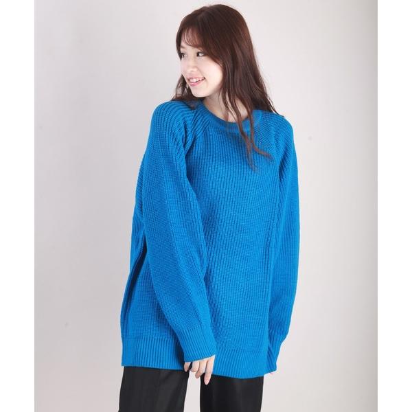 ① WESTSEA(ウエストシー):ラグランカラーニット 蛍光色ニット ネオンカラー