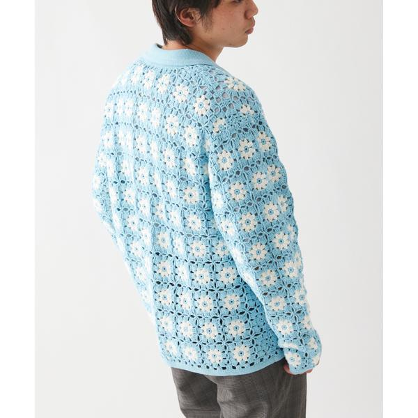 今回も人気のオープンカラーシャツ型で可愛らしいカギ編みに対し、男性でも女性でも着用しやすい短丈のシルエットデザインになっているのも魅力のデザインです♡