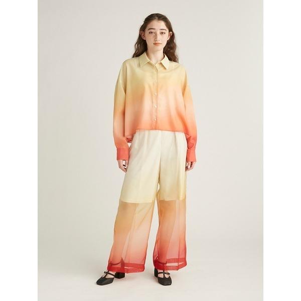 オリジナルのグラデーション柄をプリントしたシャツブラウス。