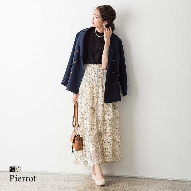 ランダムティアードドットスカート ☆ スカート ティアード ドット ティアードスカート ロング 落ち感 シフォン ギャザー フリル 黒 白 きれいめ フェミニン レディース 秋 ピエロ pierrot 価格:3,970円 |