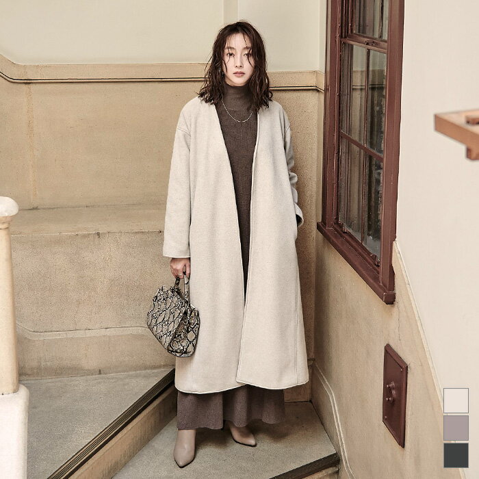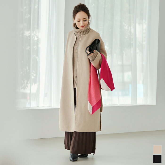 ラウンドネックリバーコート/アウター/レディース/コート/ノーカラー/オーバーサイズ/ベルト付き/サイドスリット/シンプル/ウール混 価格:19,701円 |